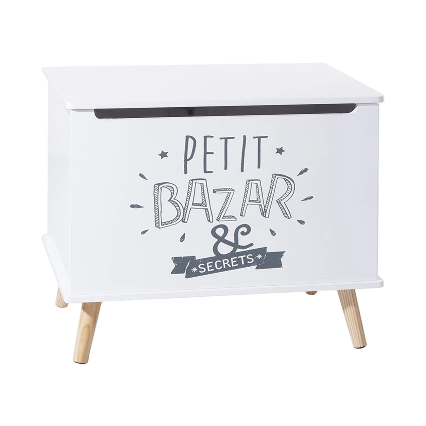 Décorez avec élégance et praticité la chambre de vos enfants, avec le magnifique coffre blanc en bois de Atmosphera for Kids. Ce meuble aux 4 pieds en pin se monte soi-même facilement. Pour une chambre dans le même style, vous pouvez l’accompagner du bureau blanc en bois vendu séparément.