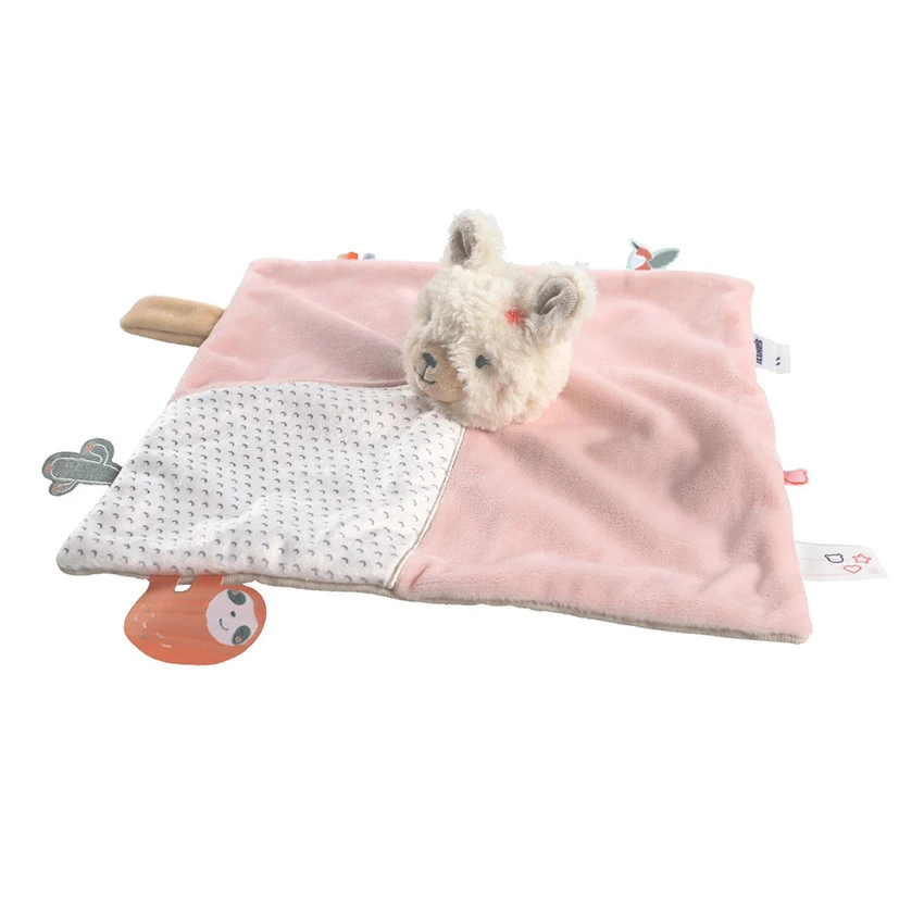 Grâce à son attache en velcro, le tidou Sacha rose de la collection Moris & Sacha s’attache facilement à la manche du pyjama Noukie’s ou à la sucette.
