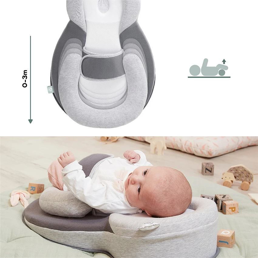 Il permet de dégager les voies respiratoires de bébé, de réduire les régurgitations et de sécuriser bébé grâce à sa forme morphologique, au rouleau de positionnement modulable et à sa ceinture de maintien.