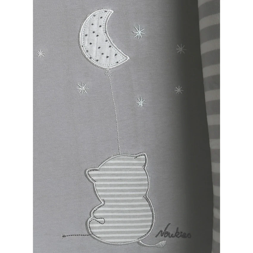 Dans les tons de gris, l’entourage est décoré d’un imprimé raye et on retrouve à l’intérieur notre ami Milo qui tient dans la main un ballon en forme de petite lune. Adorable !