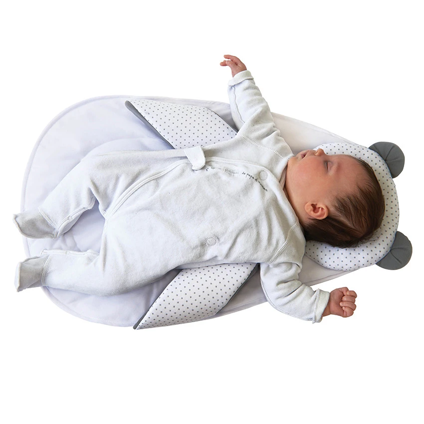 Son coussin en ouate aide bébé à garder une tête bien ronde.
