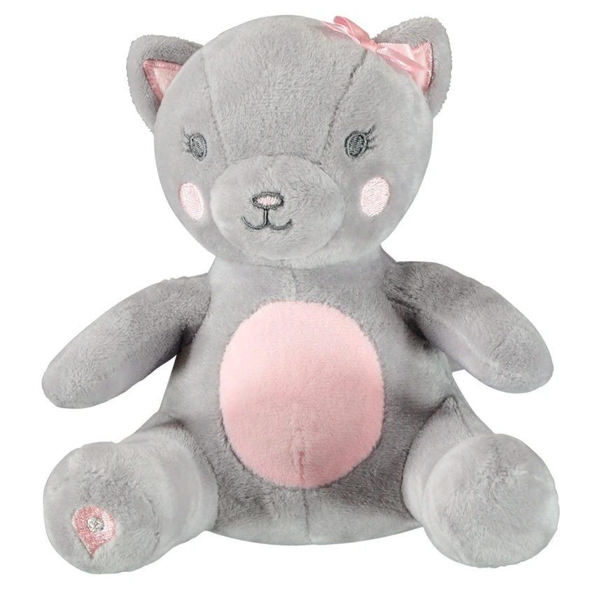 Chat en peluche. Intérieur ouatiné. Détails brodés.