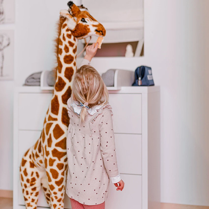 La peluche girafe permet à bébé de stimuler ses sens et de développer sa motricité globale et fine ! Notre amie la girafe permettra à bébé de stimuler son imagination et sa créativité ! Et le plus incroyable… girafe tient debout comme une grande !
