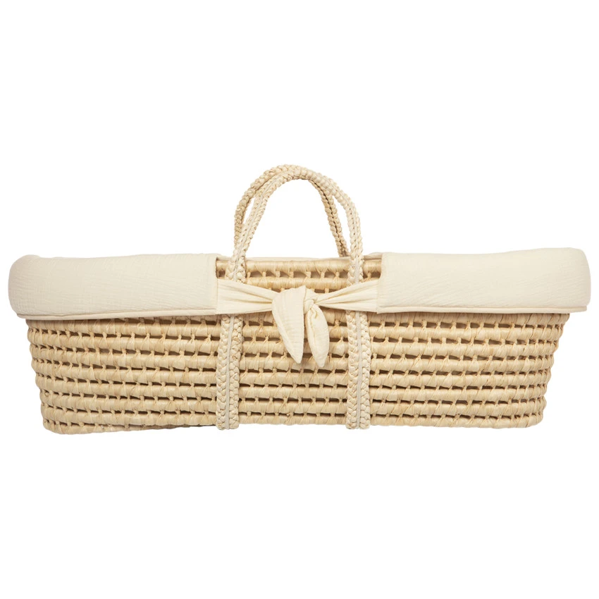Le charme d’un couffin en osier pour dormir et rêver en toute sécurité. Un cocon confortable, idéal pour un nouveau-né qui veut se reposer en toute tranquillité. Se transporte facilement, ce couffin peut servir de lit d’appoint.