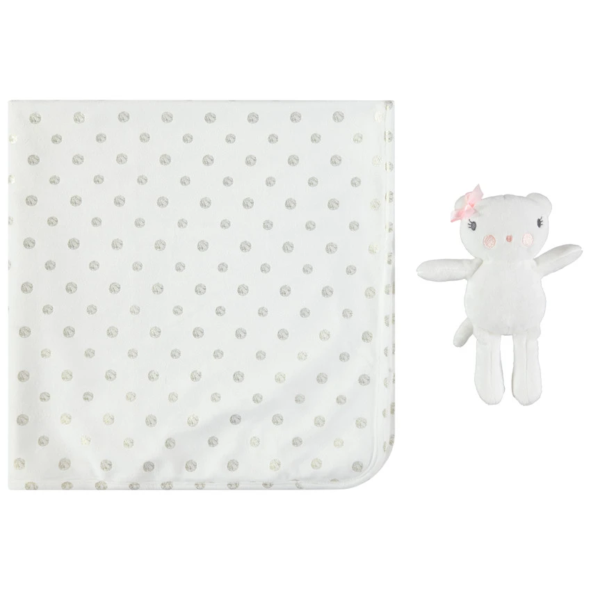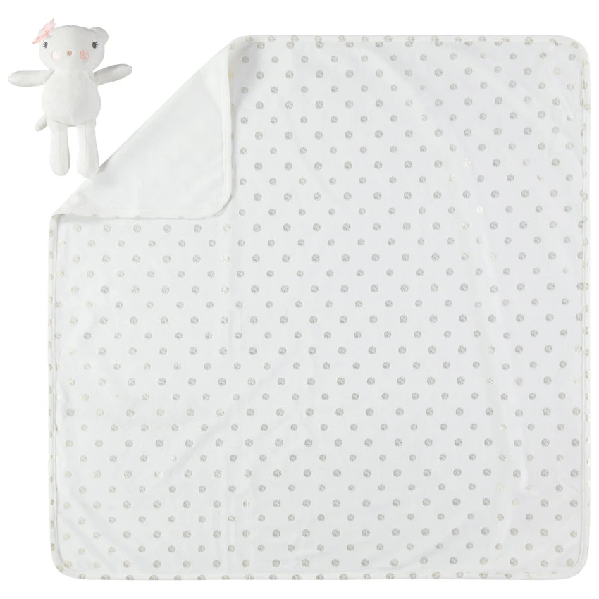 Une couverture en sherpa à pois bien chaude et douce pour câliner bébé.