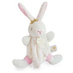 Tendance chic et moderne, cet adorable lapin tout doux, affiche un joli style frais et magique avec son petit motif à pois roses et ses étoiles dorées.