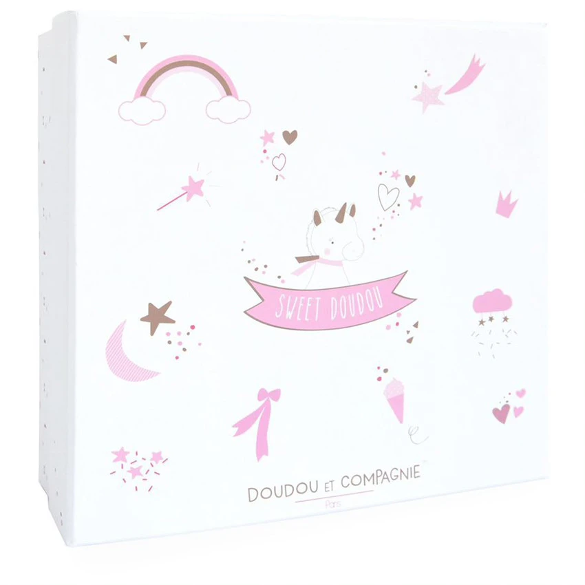 Imaginé par Doudou et Compagnie, le Doudou Licorne est un adorable doudou à paillettes, qui accompagnera bébé dès sa naissance pendant son sommeil, ses promenades ou ses longues heures de jeu.