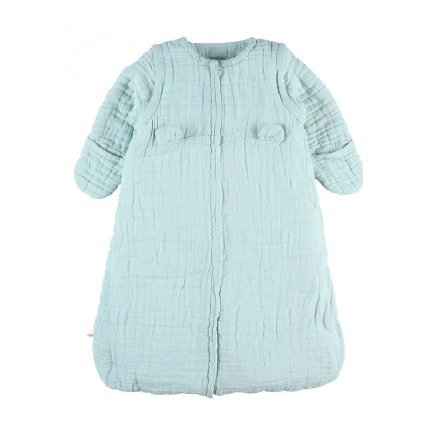 La Gigoteuse nomade Mix & Match 70 cm en mousseline de coton Biologique multicouches vert clair, 2 en 1 accompagne bébé du lit, au siège auto ou à la poussette! Idéale pour la mi-saison, elle est confortable grâce à son léger rembourrage et d’une extrême douceur.