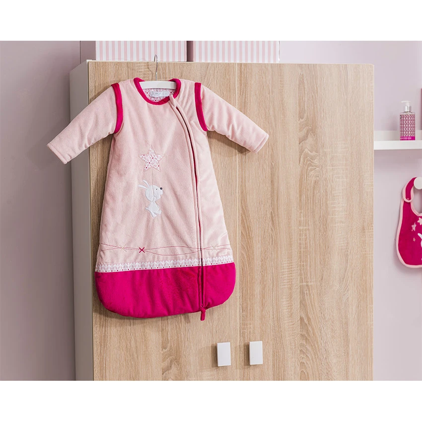 Gigoteuse à manches longues amovibles en velours rose clair.