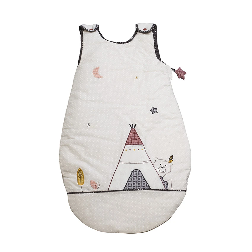 De délicates broderies et applications décorent cette gigoteuse hiver qui séduira tous vos petits aventuriers.