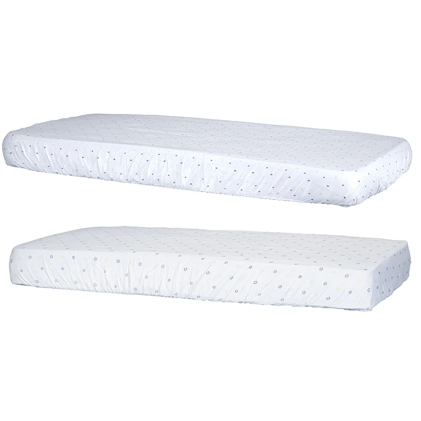 Parce que les tout-petits transpirent énormément en dormant, Sauthon a imaginé un lot de deux draps housse en mousseline de coton bio.
