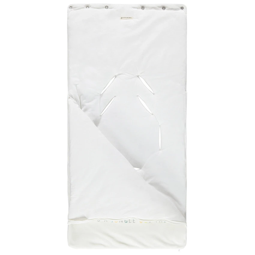 Le nid d’ange est composé d’une ouverture 8 points au dos afin d’y passer les sangles du couffin, du siège-auto ou de la poussette.