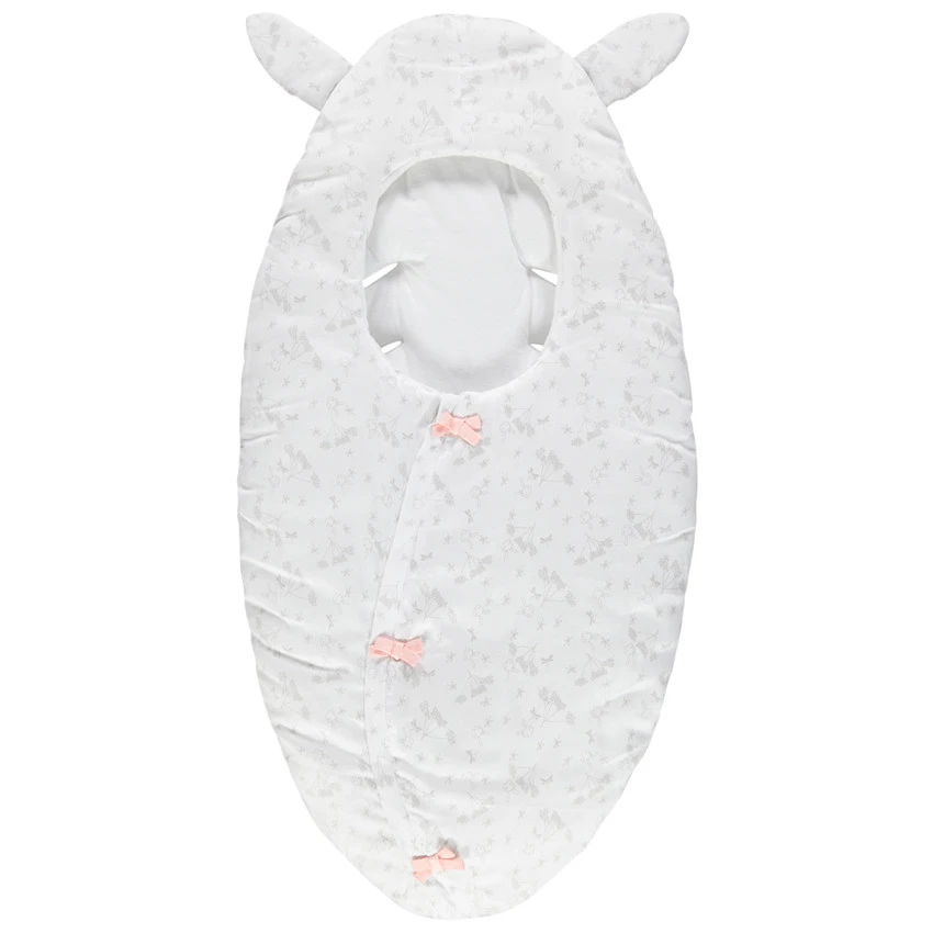 Le nid d’ange est composé d’une ouverture 8 points au dos afin d’y passer les sangles du couffin, du siège-auto ou de la poussette.