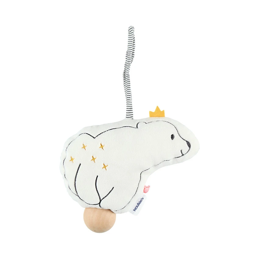 Les plus de Noukie’s: le musical est doté d’un lien en coton pour l’accrocher partout: lit, siège auto, poussette, …