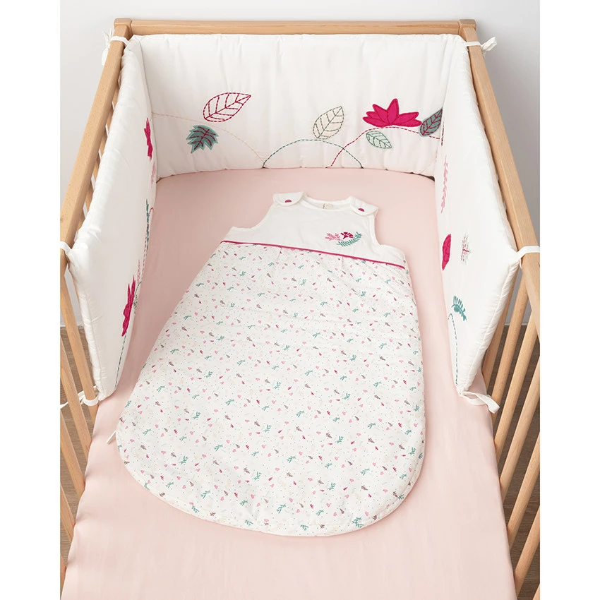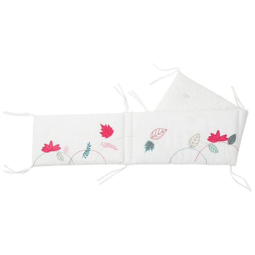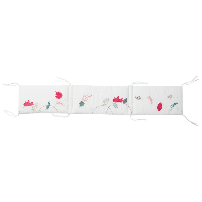 Tour de lit en popeline de 3 pans imprimés feuilles.