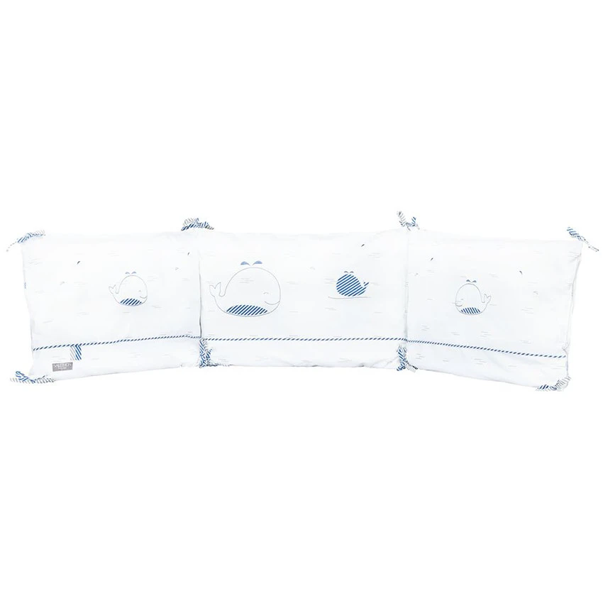 Ce tour de lit déhoussable Blue Baleine, s’adapte au lit 120×60 ou 140×70 cm.