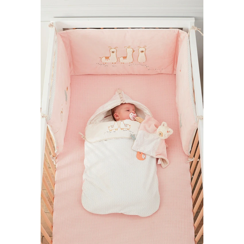 Le tour de lit Veloudoux® rose de la collection Moris & Sacha garantit une sécurité et douceur maximale à l’enfant grâce à son rembourrage.