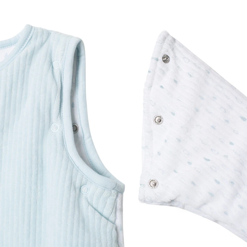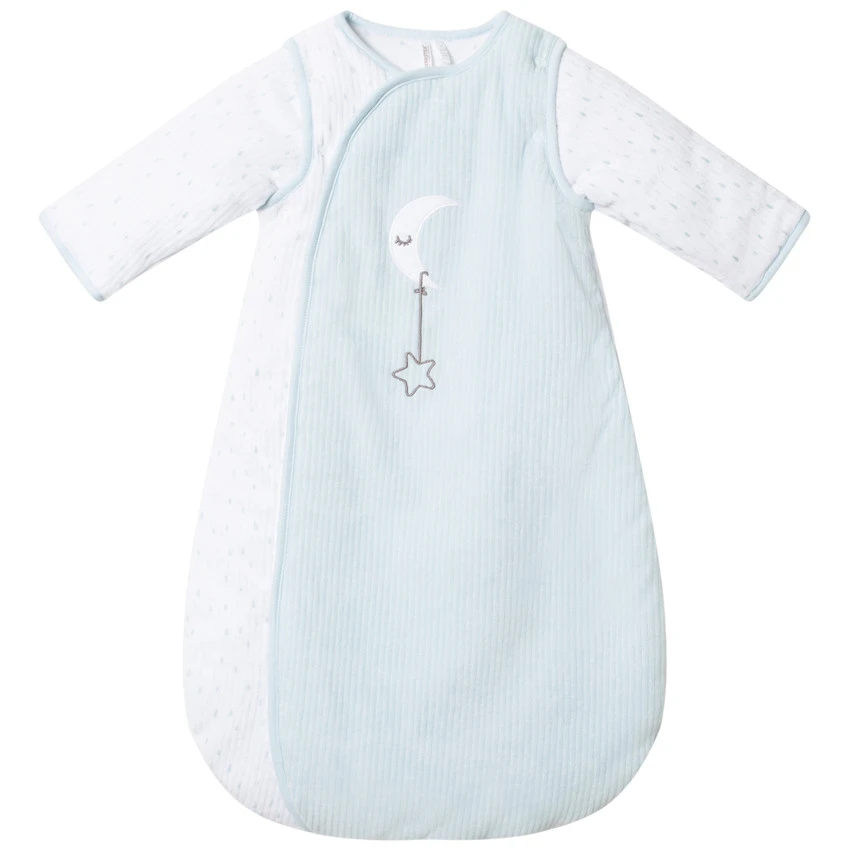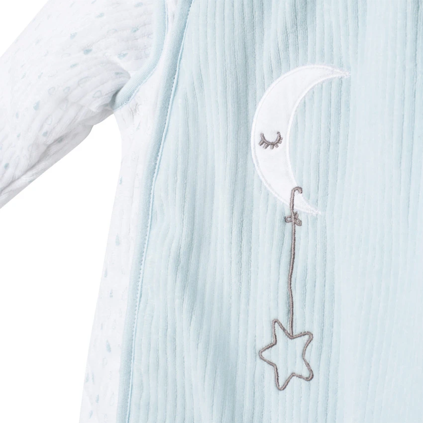 Turbulette en velours côtelé. Manches amovibles par pressions. Ouverture zippée devant. Lune brodée devant. Motif fantaisie placé.